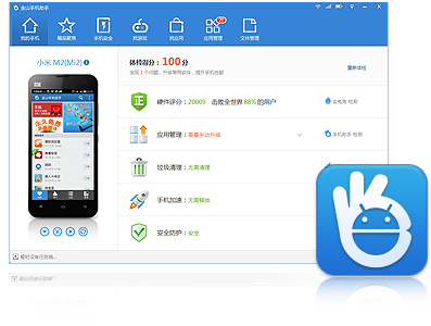 金山手机助手,找应用更靠谱、装游戏更方便。炫酷界面、人性交互、轻松管理Android手机。五层过滤确保Android应用纯净安全。极速手机连接,连接速度提升一倍。