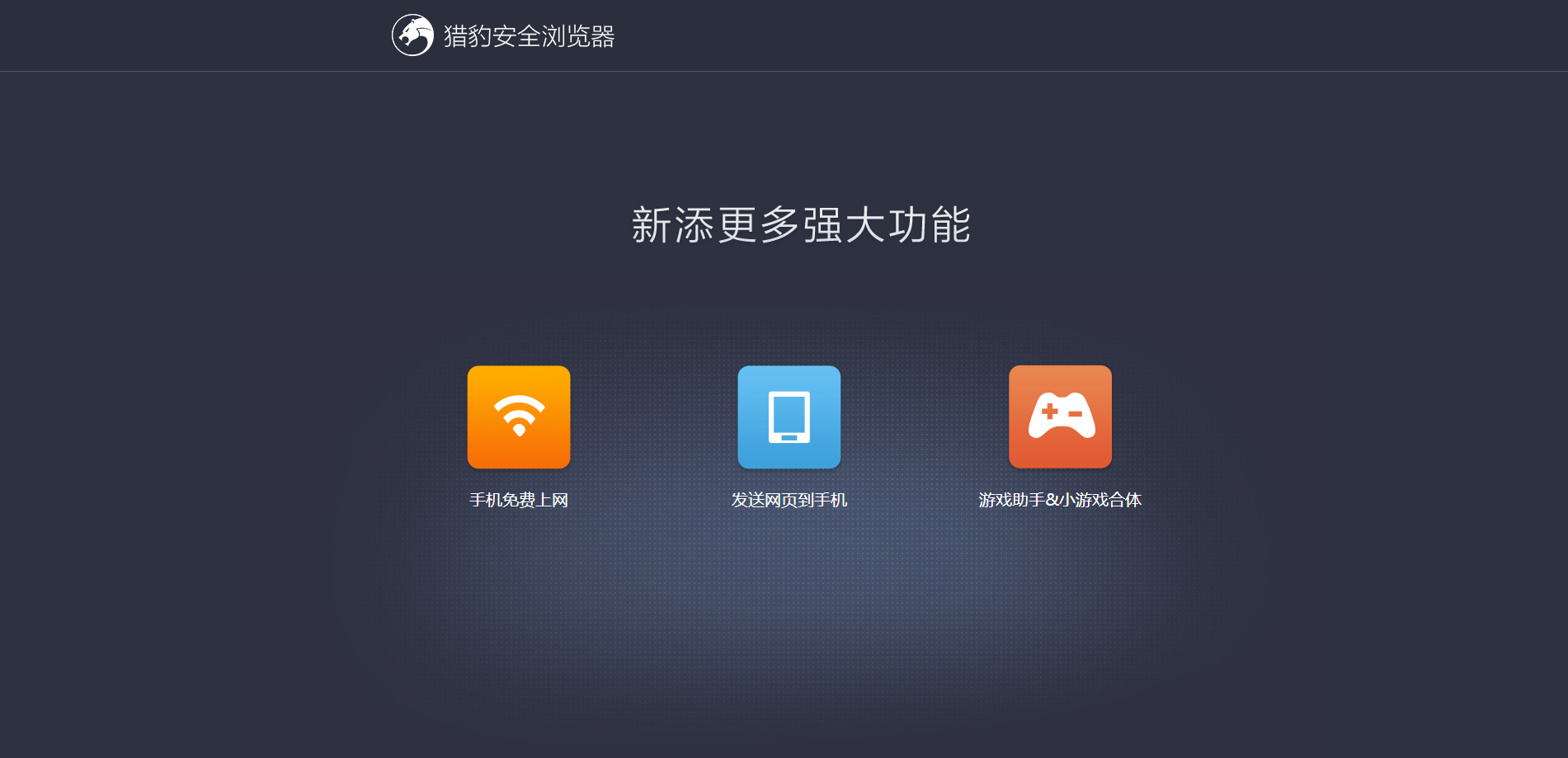 猎豹安全浏览器是一款多种视觉特效及多项功能优化的电脑浏览器软件,猎豹安全浏览器拥有着内存占用率极低速度极快,蕴含手机免费上网、游戏助手等多种特色功能,赶快下载猎豹安全浏览器体验吧!